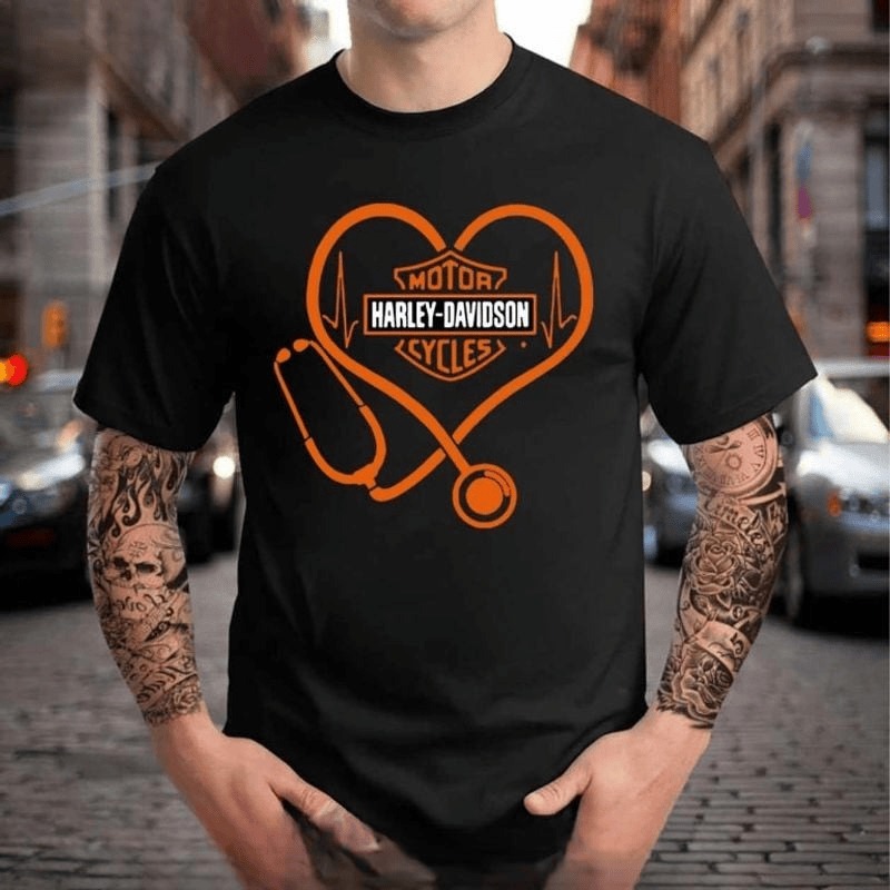 Bikergod Harley Davidson Nurse Stethoscope Heart T-shirt, Crew-neck Sweatshirt, Hoodie, Tank Top, V-neck T-shirt Design 2D Full Printed Sizes S - 5XL - NABB95