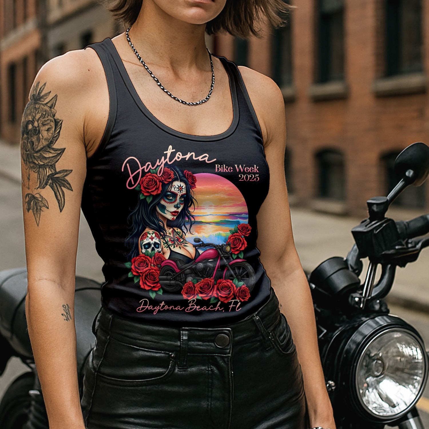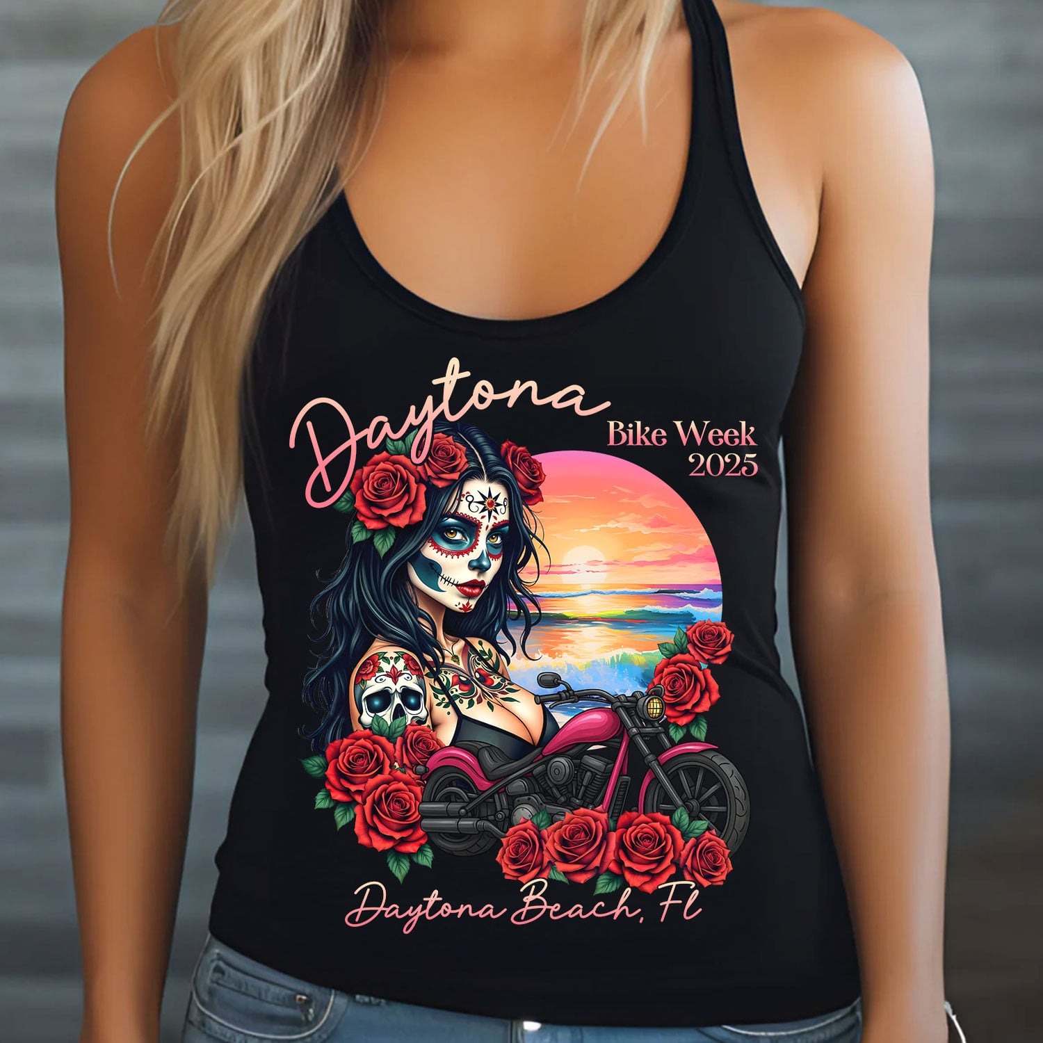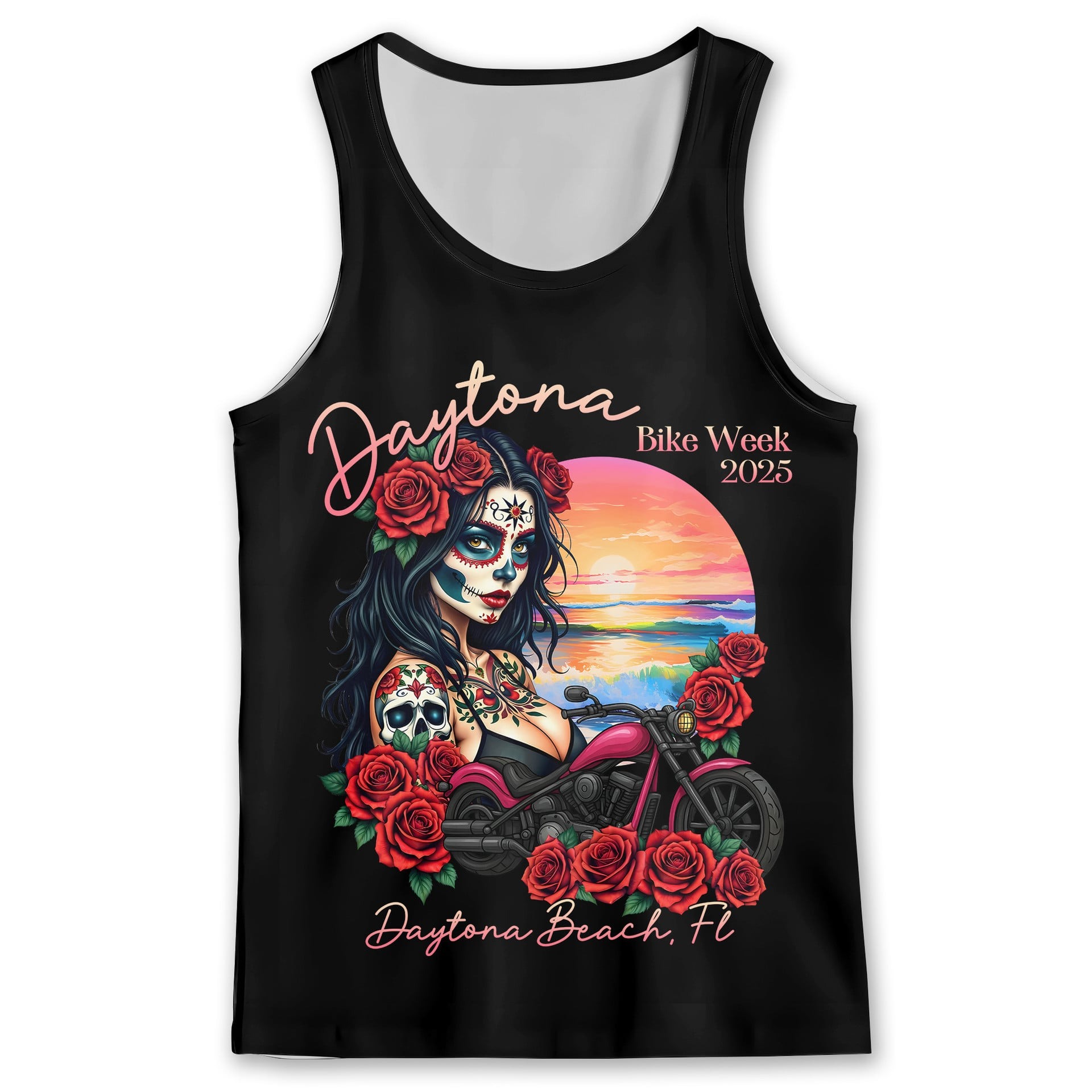 Bikergod Daytona Bike Week 2025 Day Of Dead Racerback Tank Top Design 2D Full Printed HM11042504