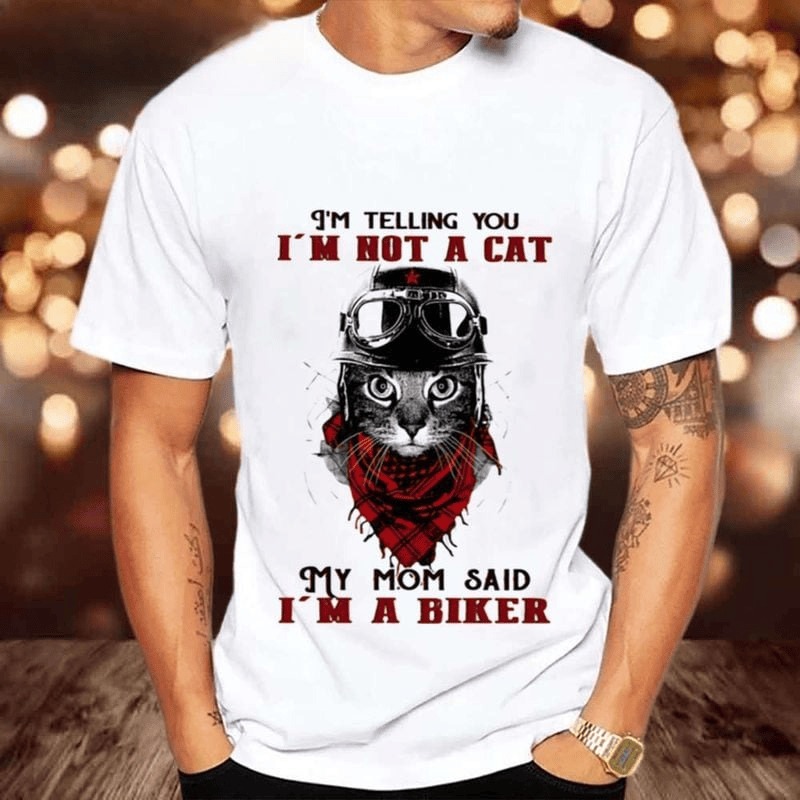 Bikergod Motorcycle I�m Not a Cat My Mom Said I'm A Biker T-shirt, Crew-neck Sweatshirt, Hoodie, Tank Top, V-neck T-shirt Design 2D Full Printed Sizes S - 5XL - NAJA403