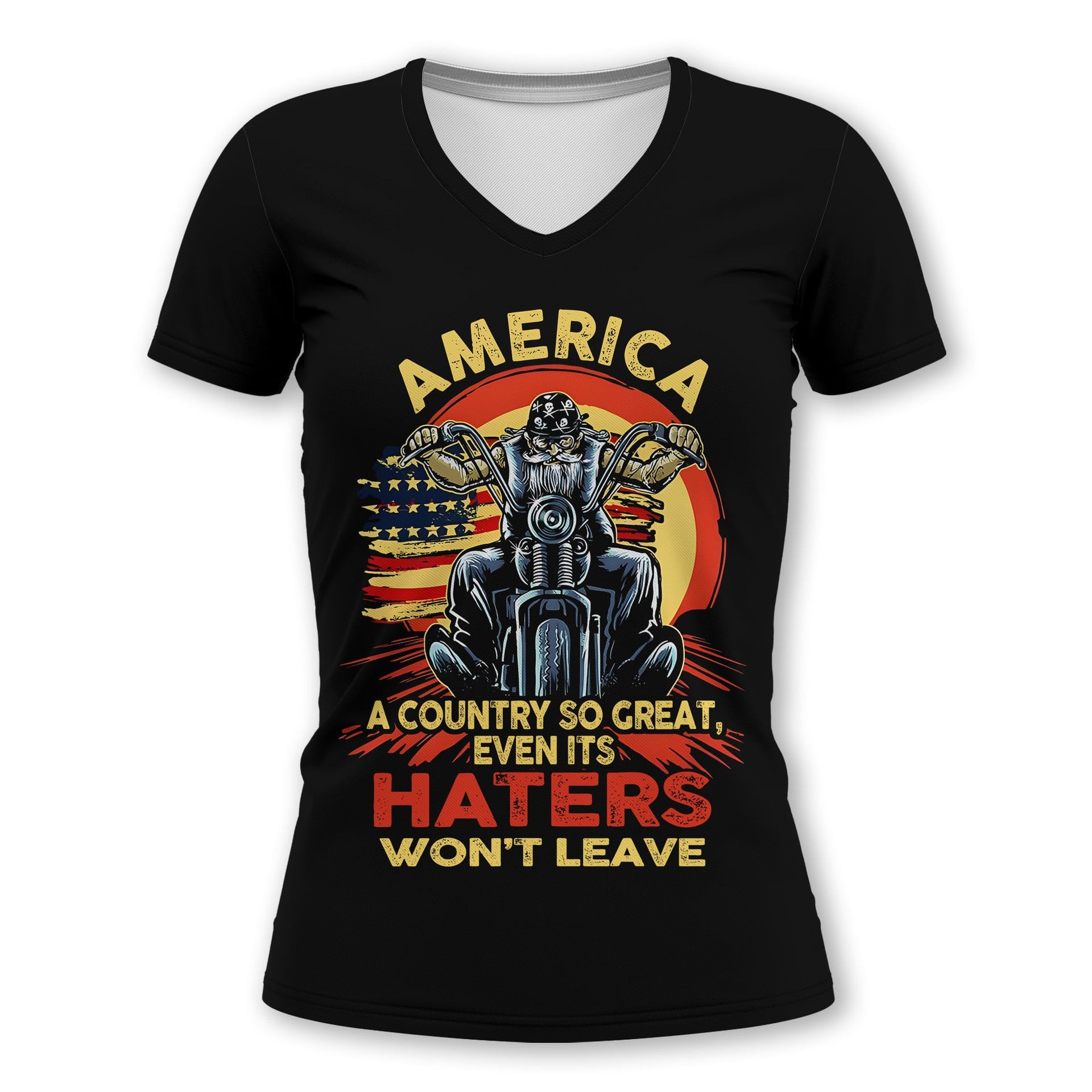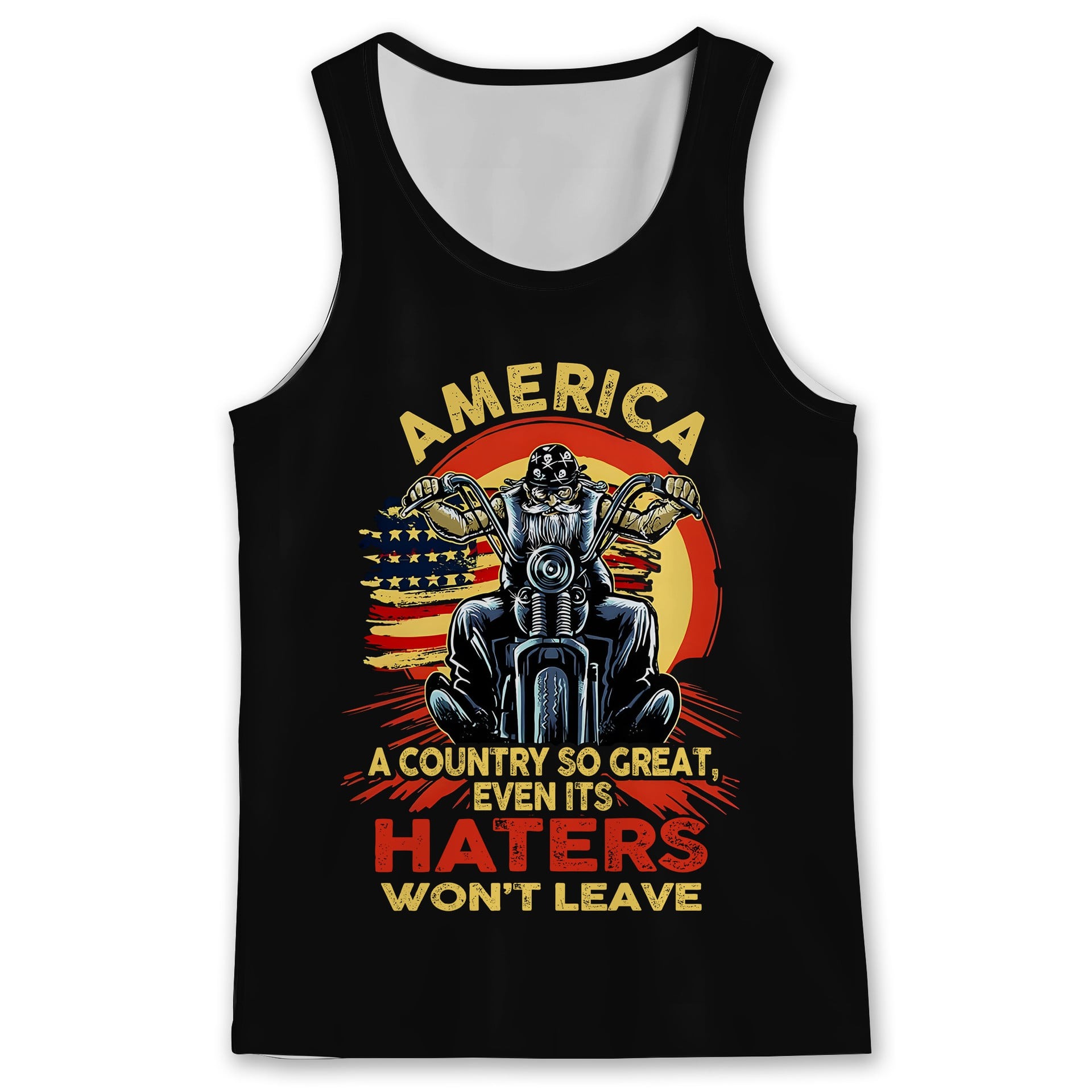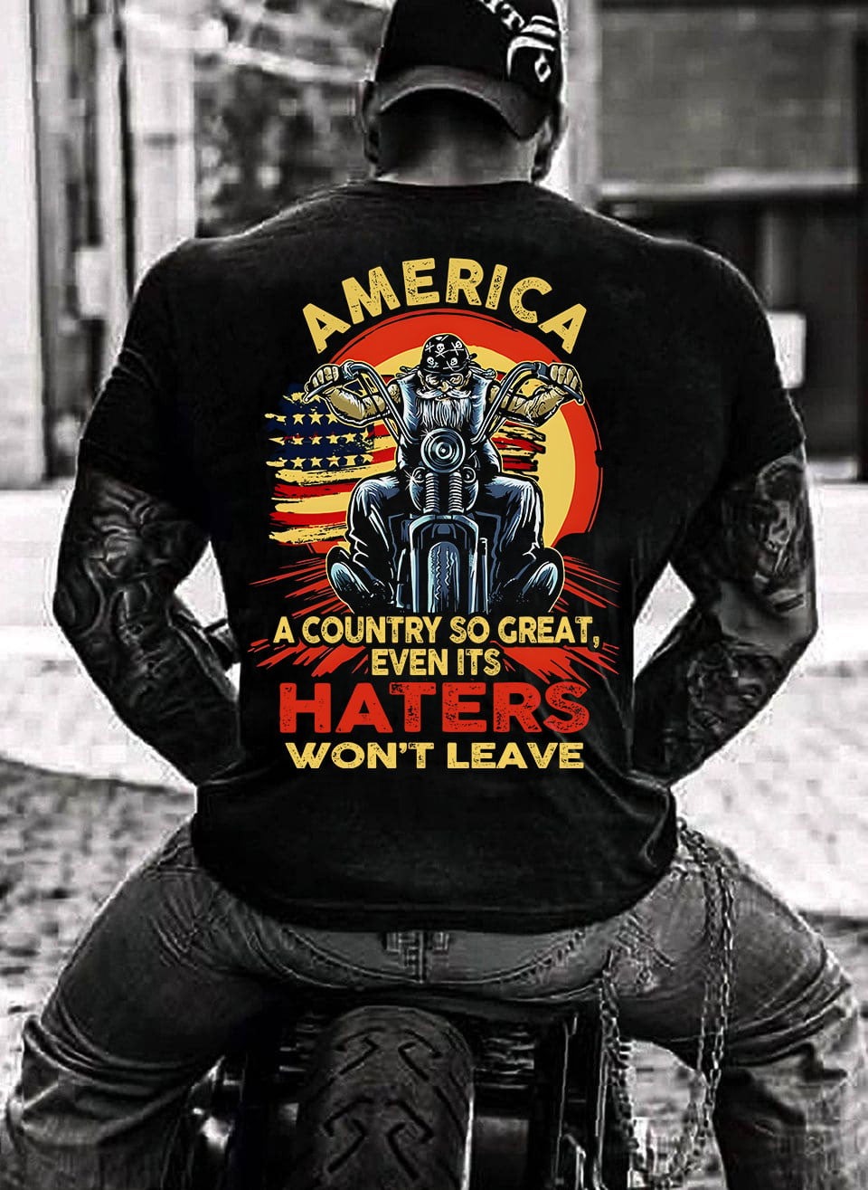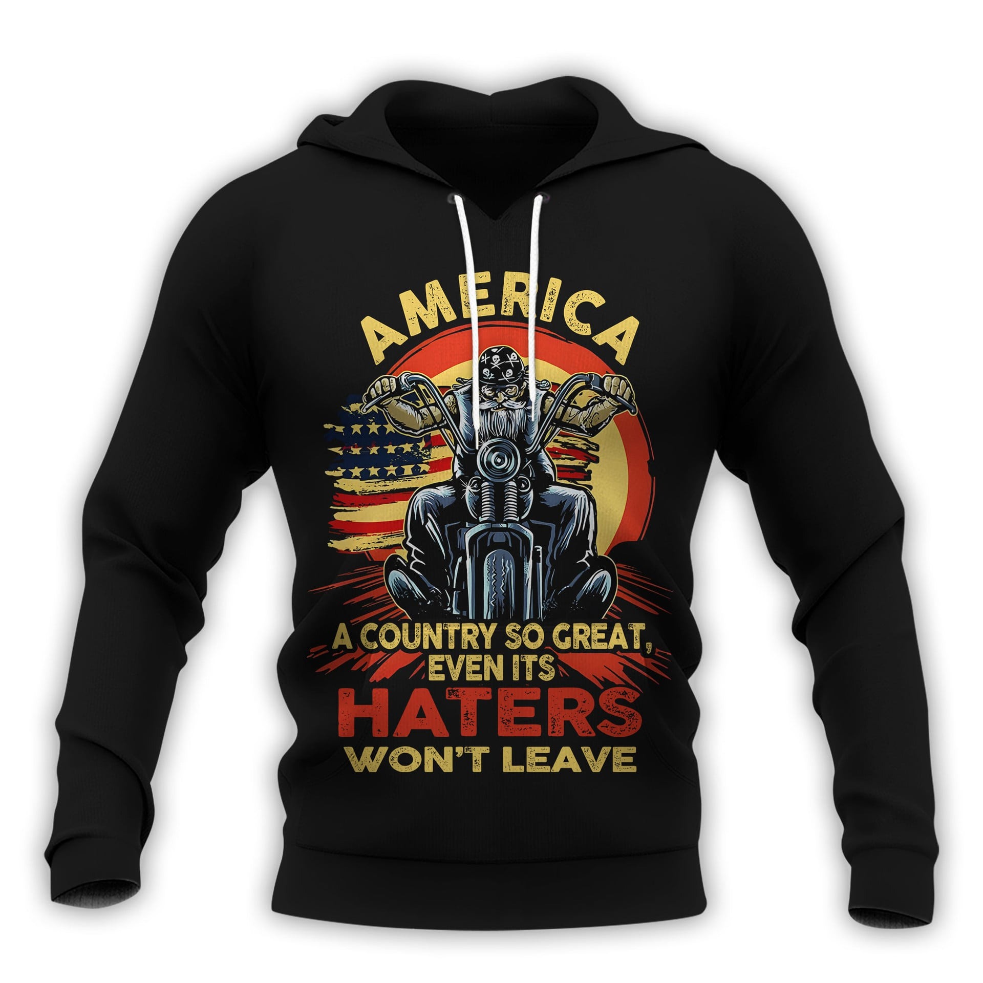 Bikergod Motorcycle America a country so great even its haters won�t leave biker T-shirt, Crew-neck Sweatshirt, Hoodie, Tank Top, V-neck T-shirt Design 2D Full Printed Sizes S - 5XL - NAJA423